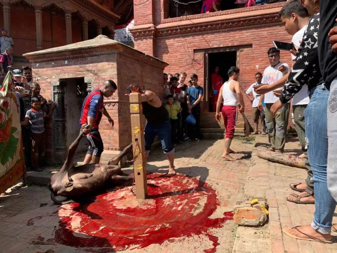 野蛮又神圣的血祭仪式在第九夜充斥着尼泊尔各地,许多平日大门紧闭的神庙于这天开启,以便让凶神们能享用人间血食。