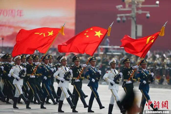 2019年10月1日上午,庆祝中华人民共和国成立70周年大会在北京天安门广场隆重举行。图为仪仗方队。中新社记者 富田 摄