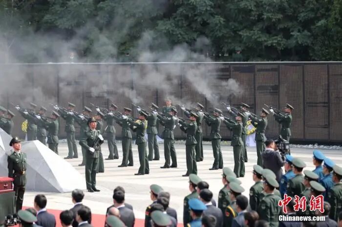 2020年9月28日,第七批在韩志愿军烈士遗骸回国安葬仪式,在沈阳抗美援朝烈士陵园举行。中新社记者 于海洋 摄