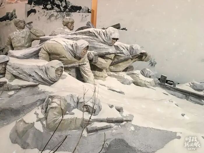 纪念中国人民志愿军抗美援朝出国作战70周年主题展览“鏖战长津湖”场景。图片来源:央视新闻客户端