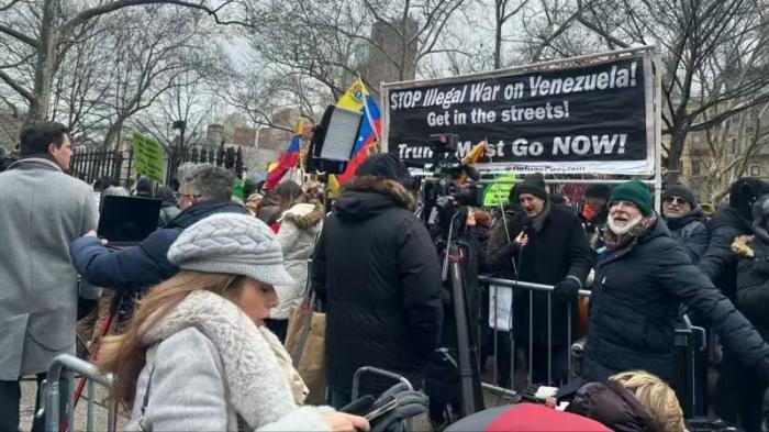 马杜罗被押往法庭。 面对美方重罪指控,马杜罗夫妇不认罪 据英国广播公司(BBC)报道,检方公布的起诉书长达25页。马杜罗在法庭上表示,自己仍是委内瑞拉领导人。 马杜罗的律师表示,马杜罗目前不寻求保释,但以后可能会考虑。 在庭审结束前,法官要求马杜罗3月17日再次出庭参加听证。 根据美国司法部长邦迪此前的说法,马杜罗被指控犯有“毒品恐怖主义阴谋罪、可卡因走私阴谋罪、持有机枪及破坏性装置罪,以及针对美国的持有机枪及破坏性装置阴谋罪”。 彭博社、《印度斯坦时报》等称,美国针对马杜罗的指控性质“极其严重”,一旦定罪将面临严厉刑罚。仅毒品恐怖主义罪名的最低刑期就达20年,最高可判其终身监禁。 美方的这场“听证”遭遇了强烈抗议。当天,美国纽约南区联邦法院外抗议者聚集,他们高呼口号,举着“释放马杜罗”“不要向委内瑞拉开战”“停止针对委内瑞拉的非法战争!特朗普必须下台!”等标语横幅。为“听证”正常进行,法院周边地区警戒森严,当局派出大批警察和执法人员维持秩序。