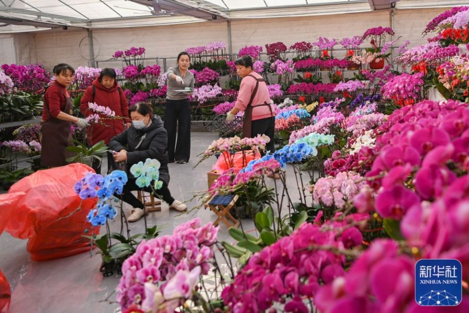 ↑ 1月22日,市民在山东省青州市花卉苗木交易中心选购鲜花。新华社发(王继林摄)